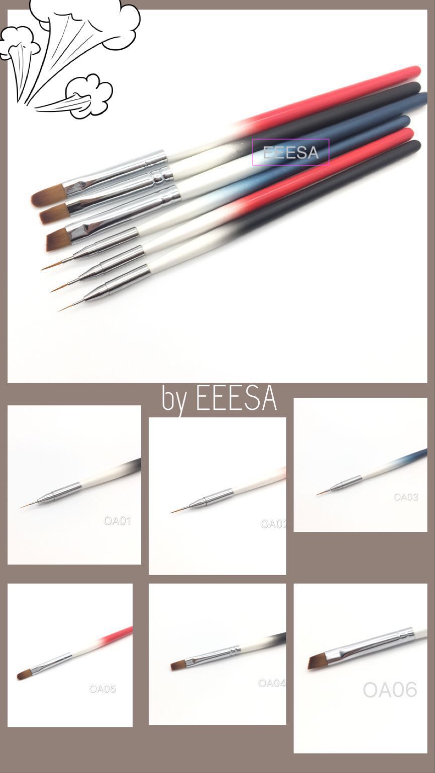Nail art brush: hair length 3mm, 5mm, 7mm with nylon hair